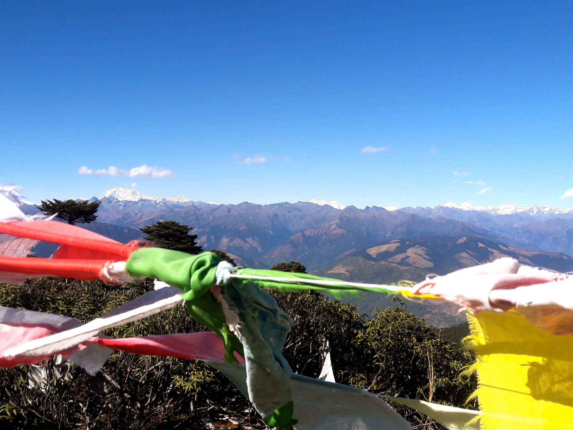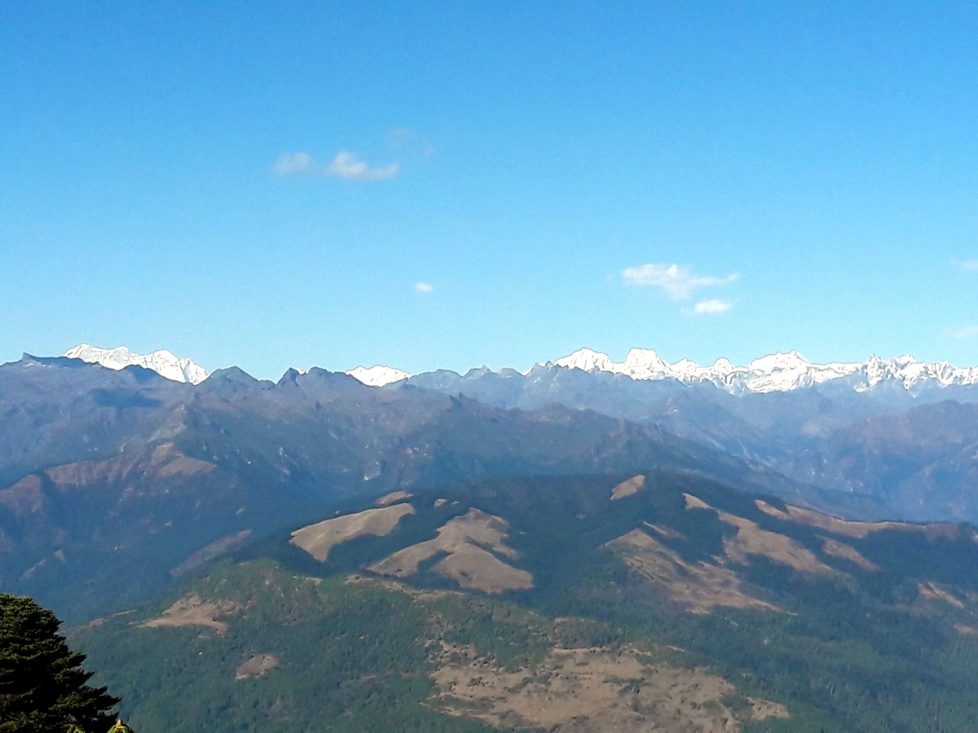 Trek through verdant and virgin forest of spruce, hemlock, fir, birch and rhododendron species. Spring spells Technicolor bloom of rhododendron species. After 2 hours, you will reach Drangela pass (3600 m). Descent the pass and climb Kitiphu ridge campsite (3870 m). Climb further uphill for 30 -40 min at Kitiphu ridge summit for panoramic view of valley and mountain peaks – mainly Gangkar Phuensum (7541 m) – highest mountain of Bhutan. Overnight in regular tent camp/ Deluxe Camping.