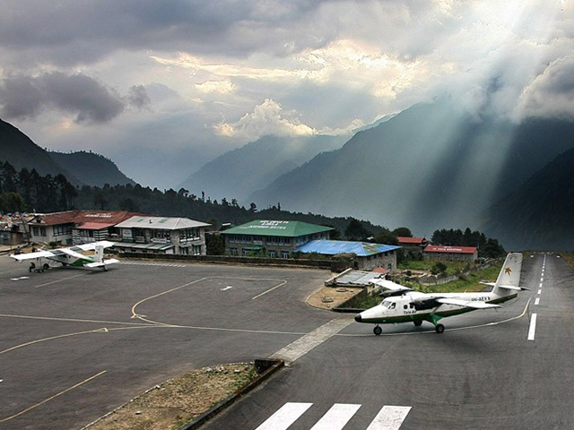 Begin your Everest View Walking Tour with Comfort Lodges with a flight from Kathmandu to Lukla. The mountain flight into Lukla is spectacular, and the landing is an exciting experience. One end of the runway is 60 meters higher than the other. The flight is typically on a small Dornier or Twin Otter aircraft, with duration of around 25–30 minutes.