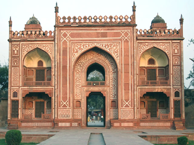 Part of the fascination of Agra is its incredible cultural wealth, so beautifully evident in the form of medieval Mughal tombs, one of which is the amazing tomb of Itmad-Ud-Daulah. Itmad-Ud-Daulah, a title which means, pillar of the state, was bestowed upon to Mirza Ghiyas Beg, the father of Nur Jahan, Emperor Jahangir's wife. Often labeled as the baby Taj Mahal, this tomb is also rightly called the "bejeweled marble box". Situated at the eastern bank of the Yamuna River, the structure consists of numerous outbuildings and gardens along with the main building. The tomb which was built between 1622 and 1628 is a fine manifestation of the first phase of monumental Mughal architecture. It is a structure built out of red sandstone with marble decorations that resembles Humayun's Tomb in Delhi. The mausoleum is set on a base about 50 sq meters and is about 1 meter high. The mausoleum itself is about 23 meters square. On each corner there are hexagonal towers, about 13 meters tall. This sun splashed white marble structure with its onyx and topaz decorations is one fine destination with its deeply indented images of cypress trees and fruit vases all of which form one beautiful structure that is supposed to have inspired the design of the Taj Mahal.